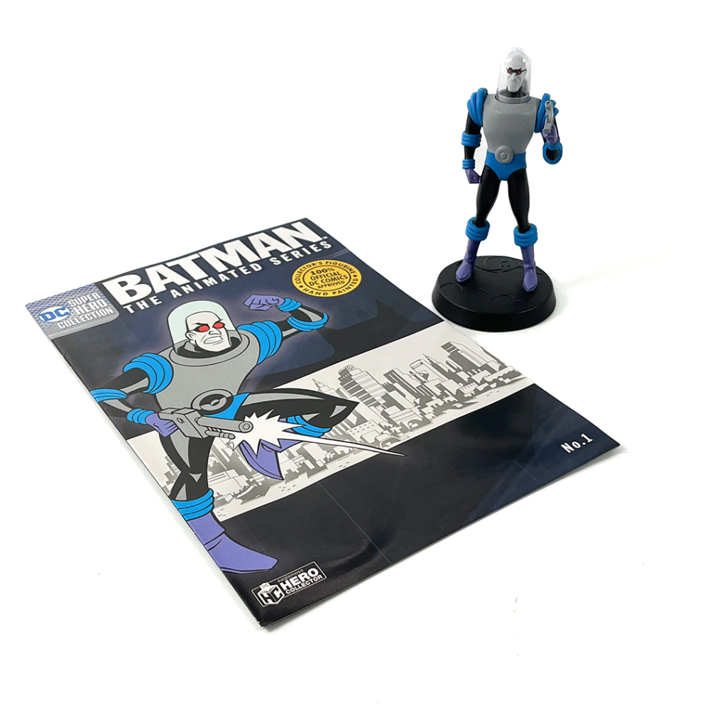 A miniatura do Mr Freeze vem completa em embalagens blister estilo retrô com uma revista de 12 páginas focada no conto frio e amargo de Victor Fries, além de ler uma aventura festiva que destaca o lado mais quente do Sr. Freeze.