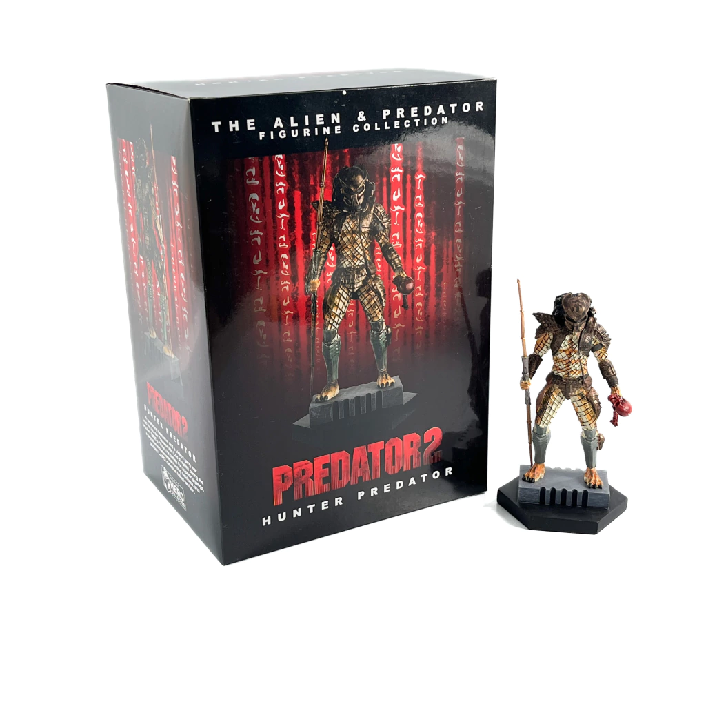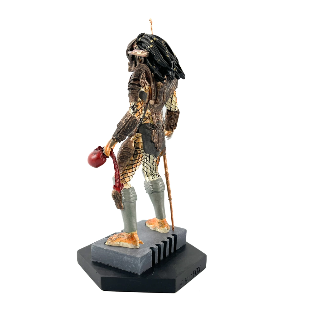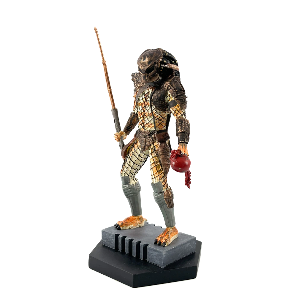 A miniatura do Predador Caçador, é representada observando a cidado do topo de um prédio, segurando uma lança e um troféu de sua última vitíma.