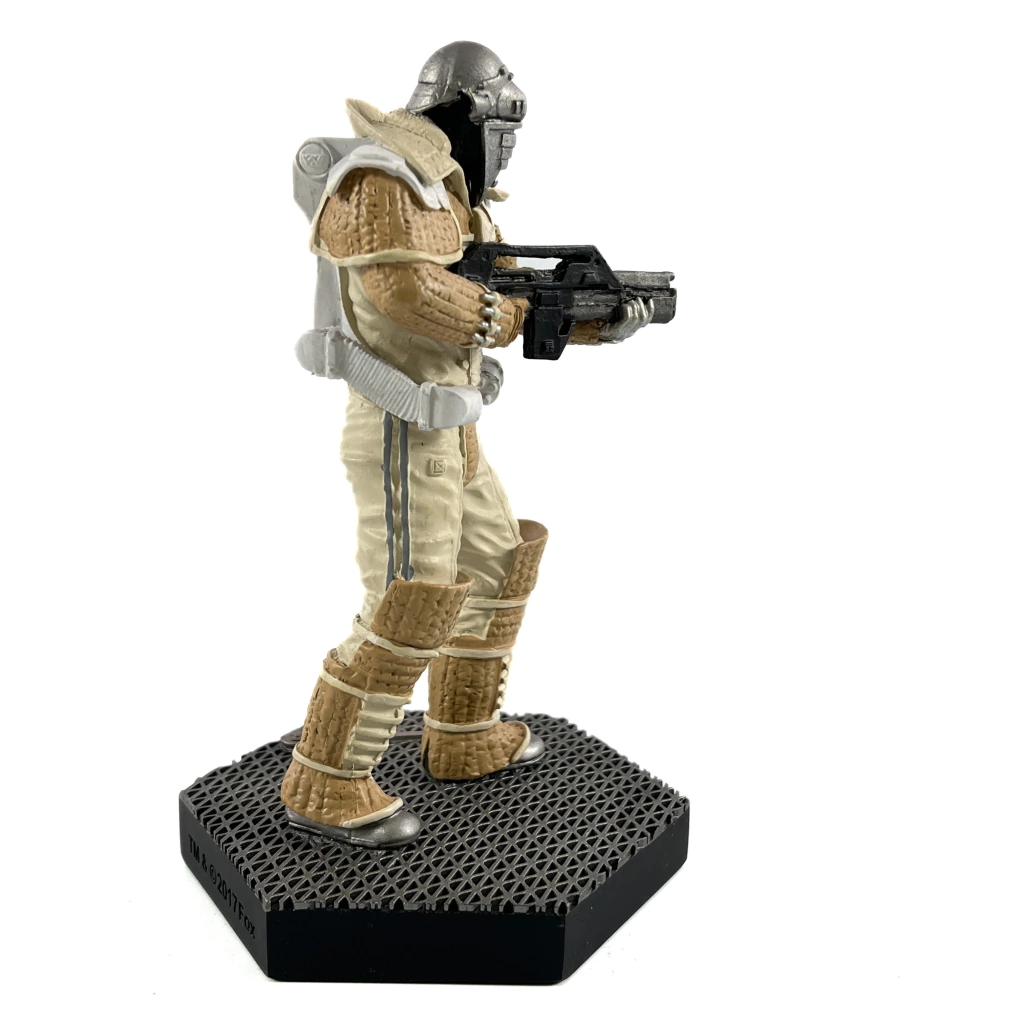 A miniatura, com 13,5 cm de altura, é uma representação impressionante desses guerreiros intrépidos. Cada detalhe intricado foi cuidadosamente esculpido e pintado à mão, capturando a essência da força e determinação desses soldados. Posicionados de forma dinâmica em uma base hexagonal personalizada, esta miniatura é uma homenagem à bravura e habilidades destemidas desses comandos da Weyland Yutani.