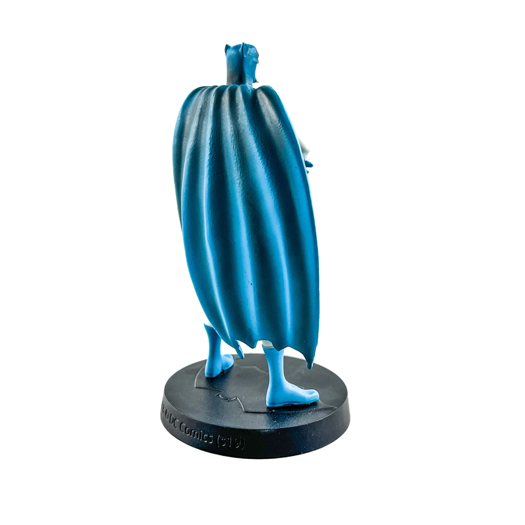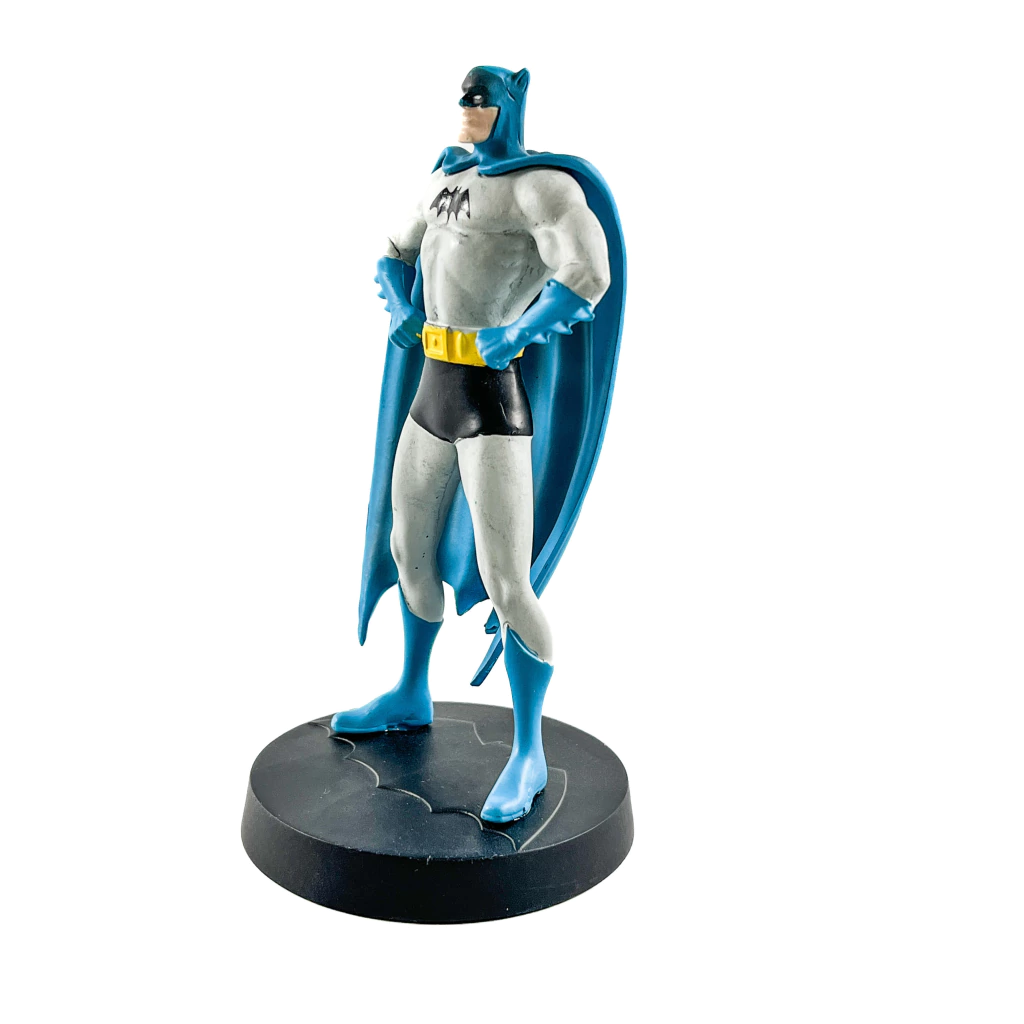 Uma nova era trouxe um novo Batman, a alteração dos Cruzados de Capa na década de 1950 continua a explorar sua história em nossa nova coleção de miniaturas de Batman Decades! Quando Batman entrou em sua segunda década de publicação, o Batman dos anos 50 era um lutador pela justiça. Novos artistas como Sheldon Moldoff e Dick Sprang se juntaram a Bob Kane e ajudaram a dar um novo visual ao super-herói. Ao mesmo tempo, o mundo do Cavaleiro das Trevas mudou de suspense criminal-noir para aventuras fantásticas mais futuristas. Esta miniatura do Batman da Era de Ouro dos anos 50 foi inspirada na aparição de Batman em Detective Comics nos anos 50. Ele está vestindo uma roupa cinza clássico, cinto amarelo, botas altas azuis brilhantes, luvas, capuz e capa.