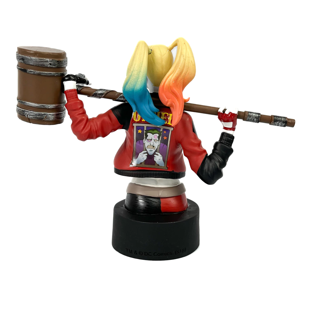 Parceira acrobática e obsessiva tanto no crime como no amor pelo Coringa, Arlequina é o mais novo busto na coleção Batman Universe Bust.