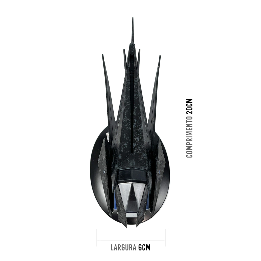 A nave estelar Ba'ul Fighter junta-se à frota na coleção oficial de naves estelares Star Trek Discovery, pronta para defender seu mundo! Ba'ul Fighter Starship é uma pequena nave de ataque com capacidade de dobra construído pelos Ba'ul. Esta nave de ângulo agudo foi pilotada por um único piloto e montou armamento de energia direcionada. Os Ba'ul usaram esses lutadores ao lado de naves sentinelas maiores para defender seu mundo natal, Kaminar. Uma espécie misteriosa e predatória, os Ba'ul oprimiram os Kelpiens - outra espécie nativa de Kaminar - por milênios, induzindo-os a viver com medo constante e aceitar o abate regular de sua própria população. Saru foi o primeiro Kelpien a descobrir a verdade, depois de fazer contato com a Frota Estelar e fugir de Kaminar como refugiado - anos depois, ele voltaria para despertar seu povo do controle de Ba'ul. Este fantástico modelo da Nave Estelar Ba'ul Fighter, fundido, recria a nave como vista na segunda temporada de Star Trek: Discovery. Foi projetado em preto com formas angulares acentuadas na parte de trás e uma pequena cabine para uma pessoa.