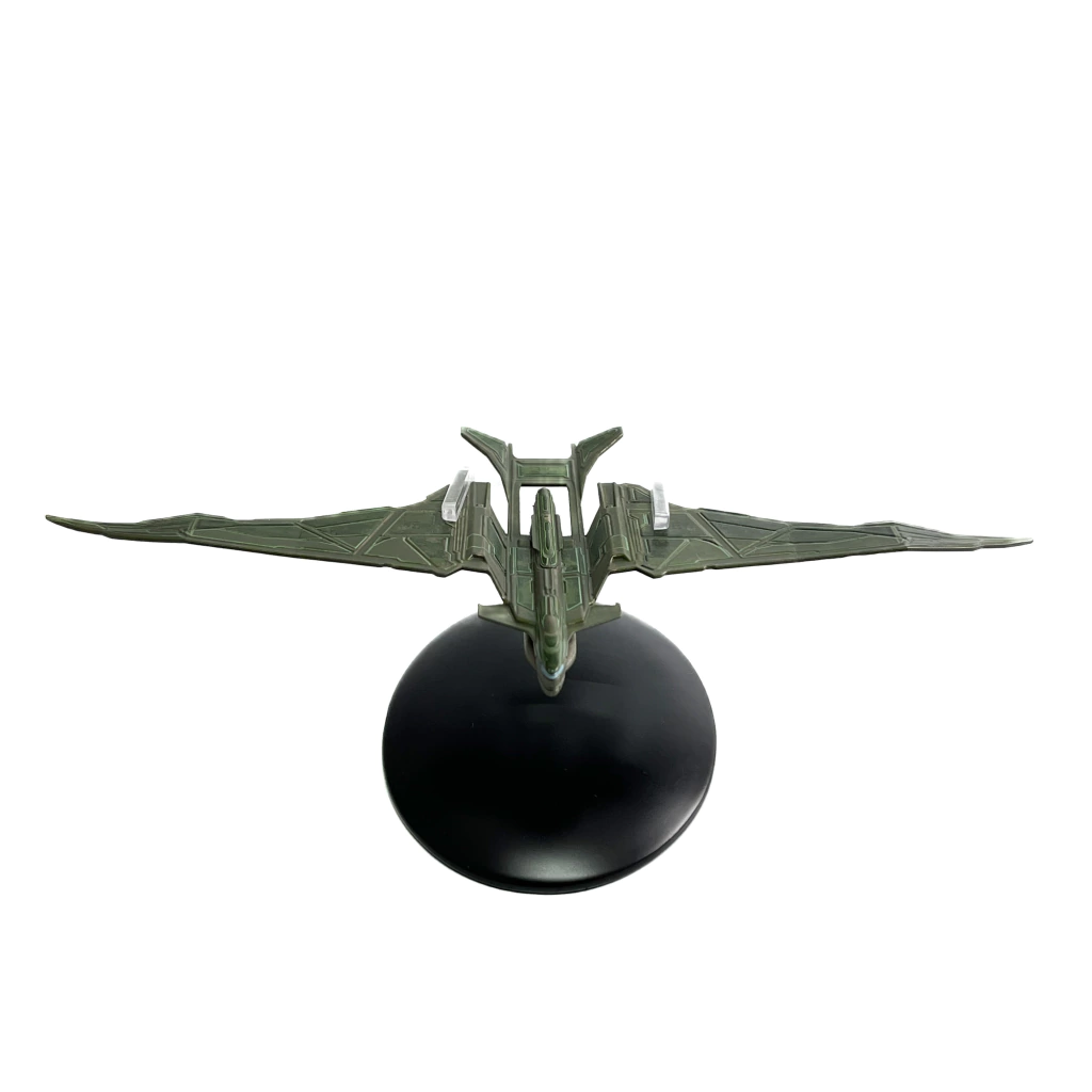A nave estelar romulana Warbird é a mais nova nave a se juntar à coleção de naves estelares do universo Star Trek! No final do século 24, o Estado Livre Romulano atualizou seus designs de pássaros de guerra para este novo modelo, uma nave de ataque segmentada e com barbatanas armada com desreguladores poderosos, sua barriga decorada com uma ave de rapina pintada. Embora essas naves fossem usadas de forma mais aberta em todo o Estado Livre Romulano, astros mais sinistros também os colocavam para trabalhar. Quando o misterioso Zhat Vash desencadeou um ataque ao planeta sintético de Coppelius, mais de 200 dos novos Warbirds Romulanos juntaram-se à sua frota genocida.