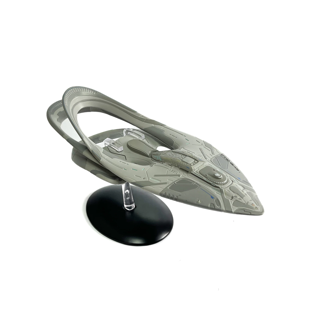 O navio USS Orville ECV-197 XL captura as linhas lindamente elegantes e o design sofisticado do navio. O navio futurista se destaca com os três loops de motor curvos na parte de trás.