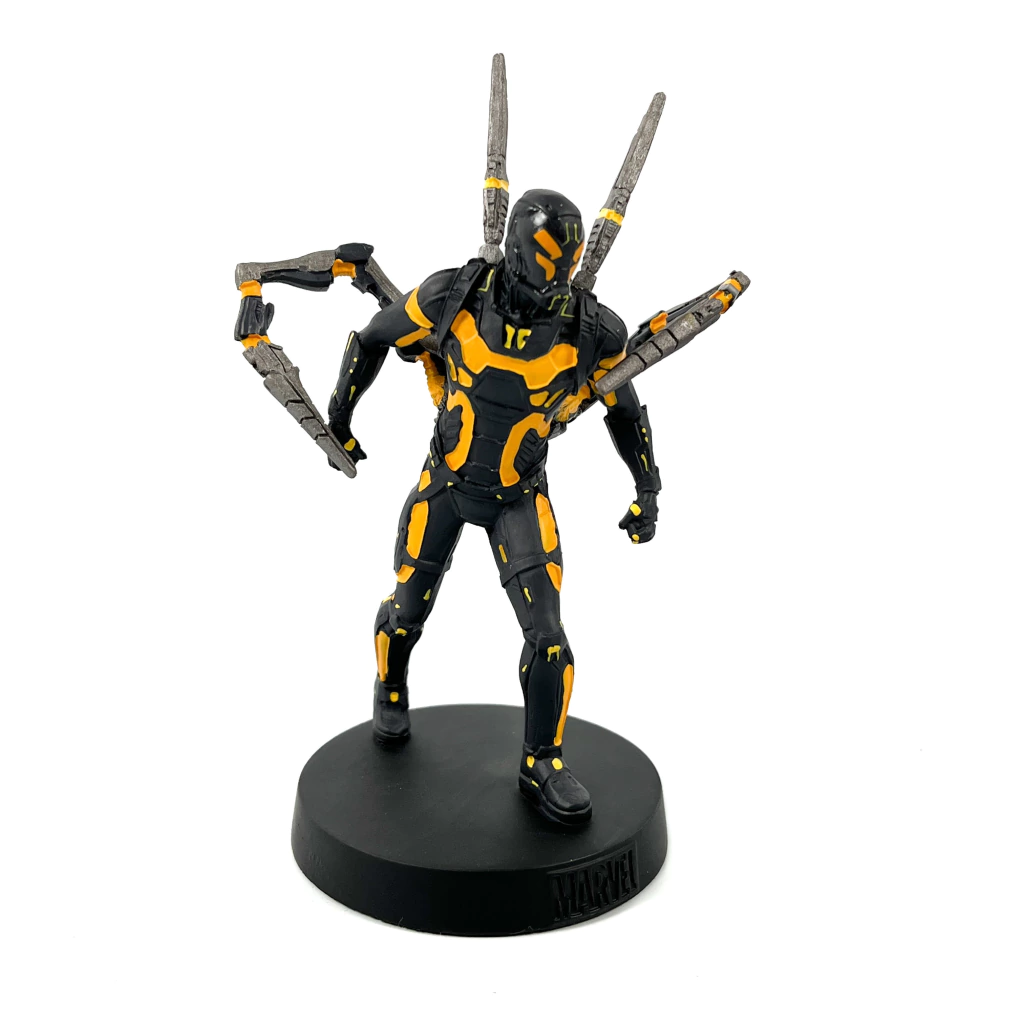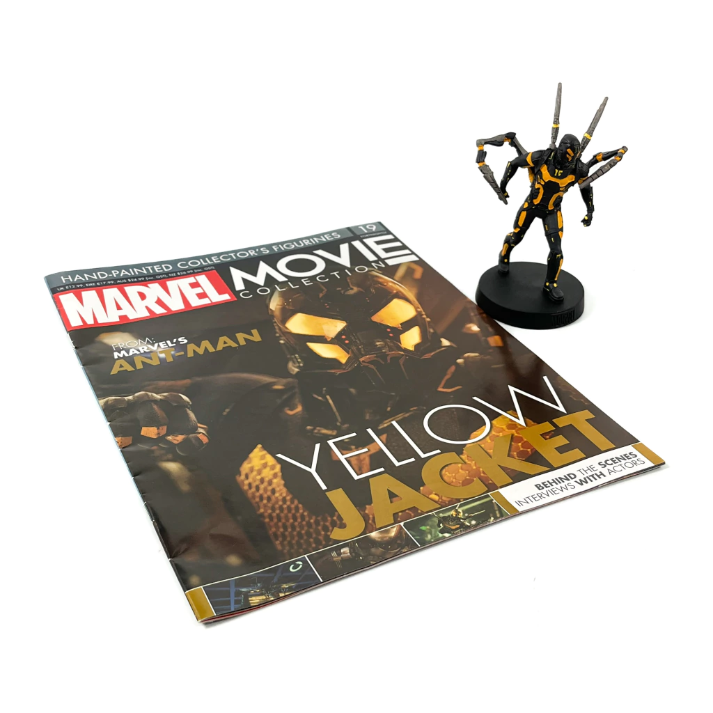 Sua miniatura foi especialmente criada com base na imagem de Jaqueta Amarela, como vista no filme Homem-Formiga da Marvel. Ele captura Yellowjacket, o antagonista Darren Cross no traje que ele criou, exibido em sua armadura e capacete preto e amarelo, com vários apêndices mecânicos emergindo de suas costas que podem disparar raios de energia. A figura do Jaqueta Amarela tem 13 cm de altura em uma base preta redonda.