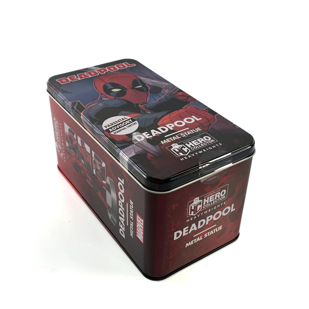 Cada modelo altamente detalhado vem em uma elegante lata de colecionador, decorada com arte dos quadrinhos.