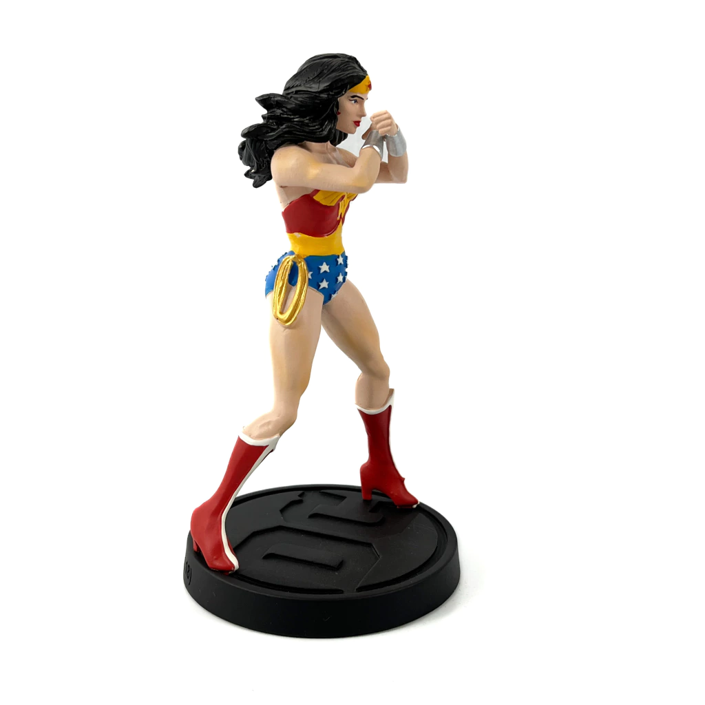 Mulher-Maravilha é uma princesa amazônica, membro da Liga da Justiça, e a mais famosa super-heroína da DC Comics! Explore o seu herói interior com esta incrível miniatura da Mulher Maravilhosa de Estilo Clássico da década de 1980, da nova Coleção da DC Mulher-Maravilha Mythologies. Esta miniatura da Mulher Maravilha foi pintada à mão e produzida em resina metálica de alta qualidade, e ela está com seu cabelo dinâmico varrido pelo vento, armada com seus braceletes à prova de balas de prata, criados para protegê-la. Capturada em seu traje vermelho e azul icônico com estrelas brancas e sua armadura inclui sua tiara dourada, peitoral de águia, um cinto de ouro correspondente e botas vermelhas com capas de prata. Seu laço de ouro da verdade está à disposição para todos os inimigos que se aproximam. É acompanhada por uma revista de 12 páginas. Os fãs da super-heroína mítica com certeza acharão esta clássica miniatura da Mulher-Maravilha, um complemento essencial para sua coleção DC Superhero!